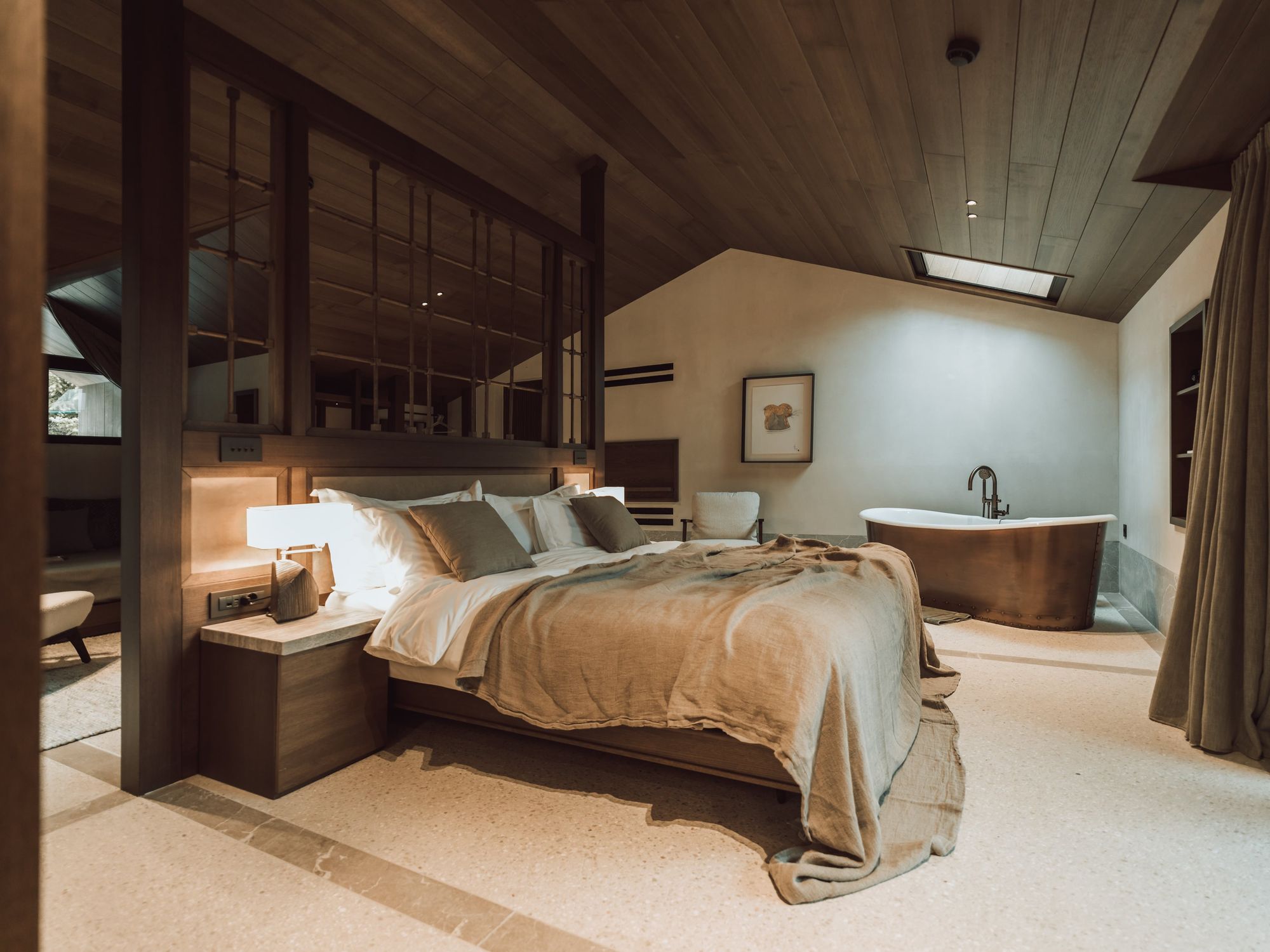 Az épületet 1929-ben Anna Mela, egy a korában ismert jótékony arisztokra építtette, hogy a háborúban megsebesült katonák és tüdőbetegek gyógyulhassanak a hegyi levegőn. A penicillin megjelenése után a szanatórium bezárt, majd évtizedekre magára maradt. A természetlassan visszafoglalta, a tetőt leszedték, a kövek közé benőtt a moha – mígnem egy kisfiú, aki a környéken nyaralt, rátalált, és valamiért nem tudta elfelejteni. Ő Stratis Batagias volt, a hotel mai tulajdonosa, aki felnőttként visszatért, hogy életet leheljen a romos épületbe. Nyolc évig tartott, mire a MANNA újra megtelt fénnyel és emberi jelenléttel. A felújítást az athéni K-Studio és a Monogon Office of Architecture vezette: nem újjáépítettek, inkább új értelmet adtak annak, ami megmaradt. A kőfalak, a gesztenyefa-burkolatok, a terrazzo és a mozaik a múltat őrzik, miközben kortárs, letisztult harmóniába rendeződnek. A terekben van valami mélyen emberi: a nyers anyagok és a puha textíliák finoman kiegyensúlyozzák egymást. A lobbyban tűz ég a kandallóban, körülötte könyvek, székek, suttogó beszélgetések – olyan, mint egy hegyi ház, ahol jó lenni. A 32 szoba és lakosztály mind másképp mesél: a magas mennyezetek, a nagy ablakok és a fenyőerdő illata azt az érzést adják, mintha maga a természet lenne a vendég. A fürdőkben rézkádak, gyógynövényillat, napfény csillan meg a márványon; a fényt az Akropolisz világítását is jegyző Eleftheria Deko tervezte.