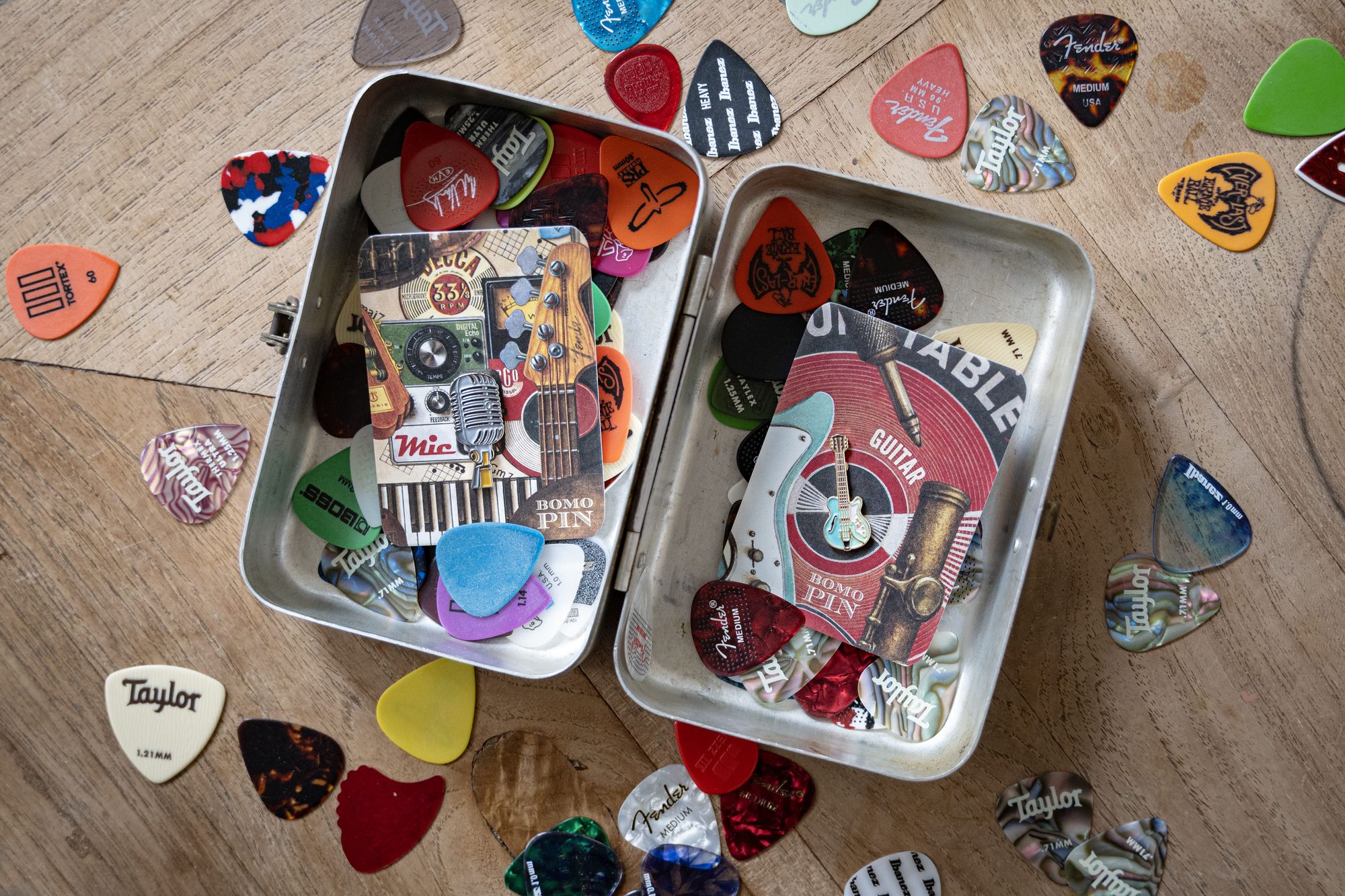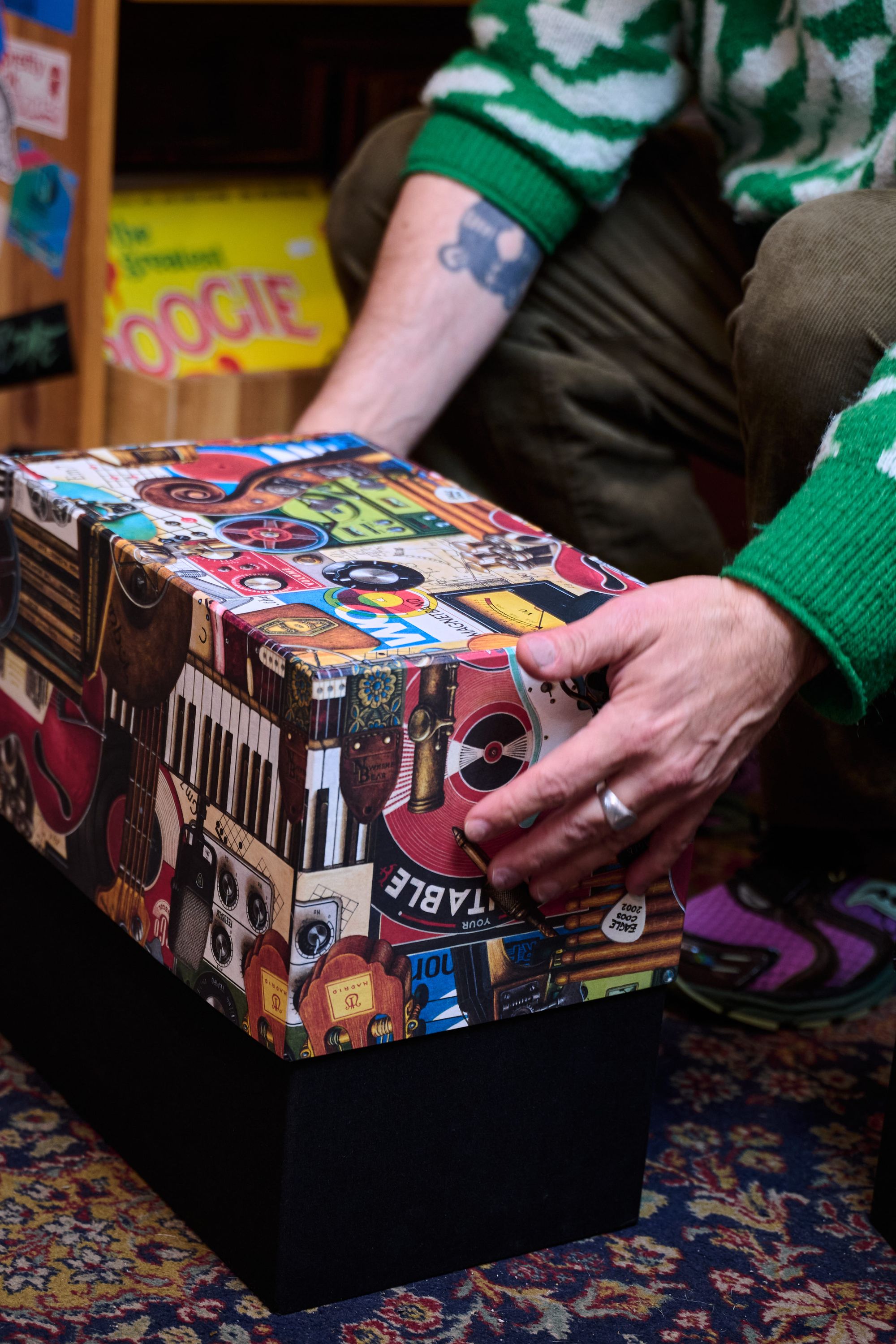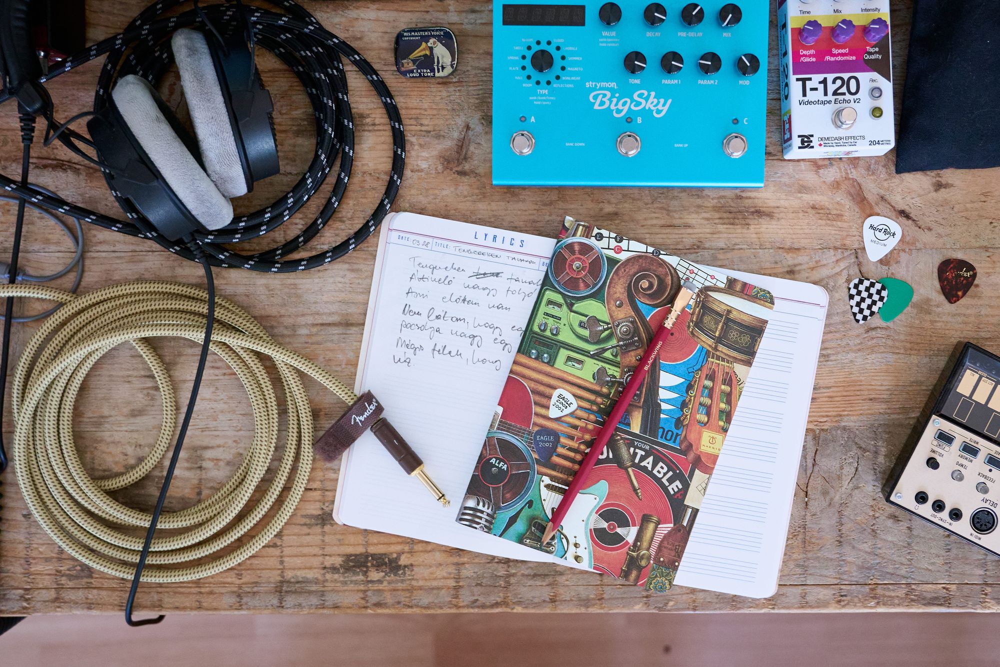 A kollekció grafikája Hollósi Éva munkája, és szerencsére elkerüli a „retro filter mindenre” csapdáját. Inkább rétegez: skiccekből indul, majd szépen épül fel, mintha egy track készülne. A fémes felületek és gombok festése annyira részletes lett, hogy közelről nézve szinte működni kezdenek. A Hangstúdió egy új minta a meglévő Bomo-termékeken – naplókon, albumokon és határidőnaplókon is működik ez a vizuális ritmus. Most először viszont kifejezetten a zene köré szervezett tárgyak is bekerültek a mixbe. Ilyen a dalszerző füzet, ami egy hely félkész soroknak, ötleteknek, dallamkezdeményeknek. Nem kell befejezni, nem kell publikálni, elég, ha létezik. A lemezdoboz már egy másik szint: praktikus, közben statement is, végre nem egy random polcon porosodnak a vinyljeink. És persze ott vannak a kisebb, könnyebben hordható darabok is, mint a kitűzők, oldschool módon jelzik a stílusod. A Bomo mostani iránya láthatóan túlmutat a tárgyakon, és arra fókuszál, hogy mit kezdünk a zenével akkor, amikor már nem háttérzaj. Ennek a gondolatnak egy következő lépése lesz az a közös kiadvány, amit a Klasszik Lasszó csapatával készítenek: irodalom, zene és tárgykultúra egy dobozban. A Hangstúdió kollekció így egy ismerős elemekből jól összerakott remix.
