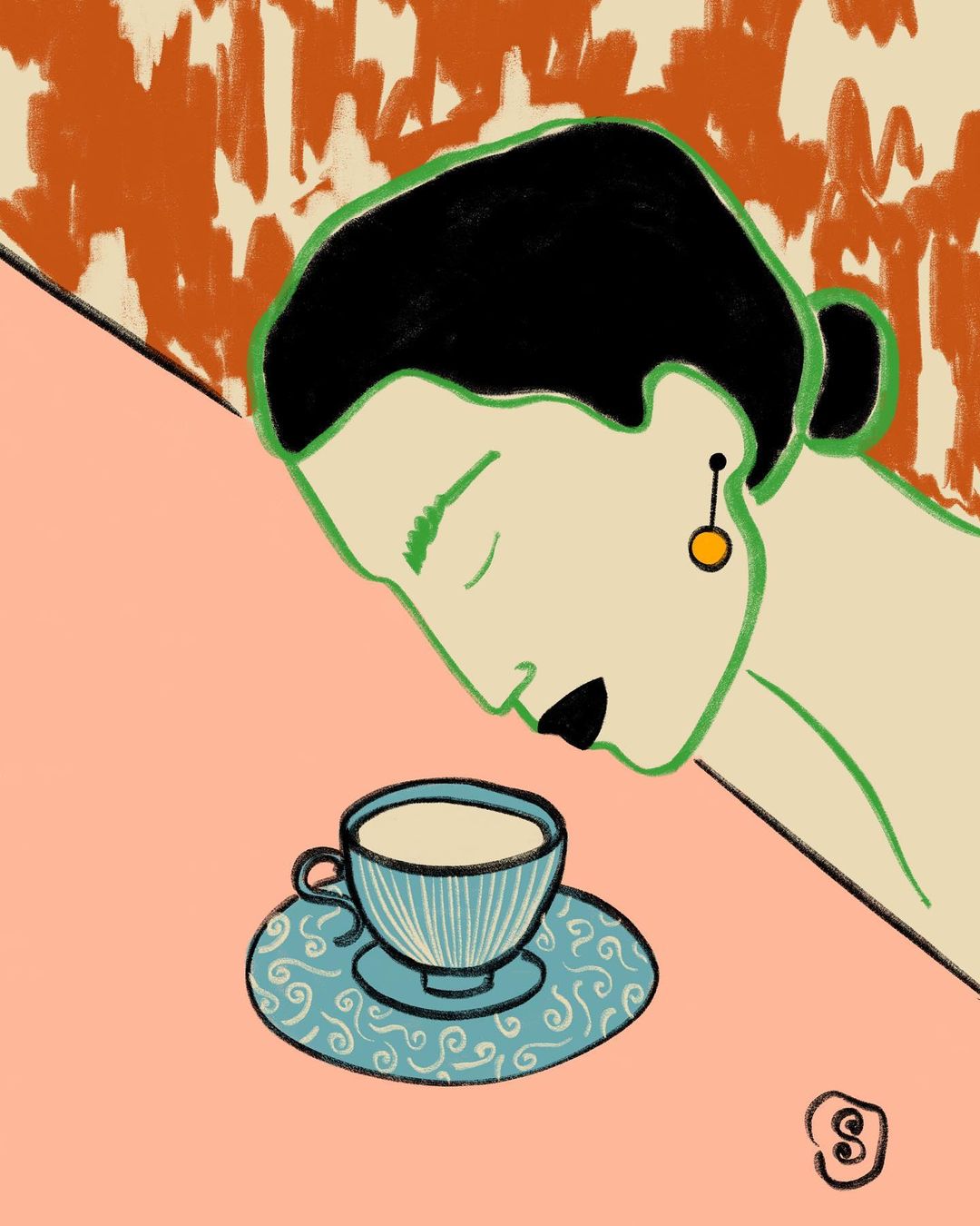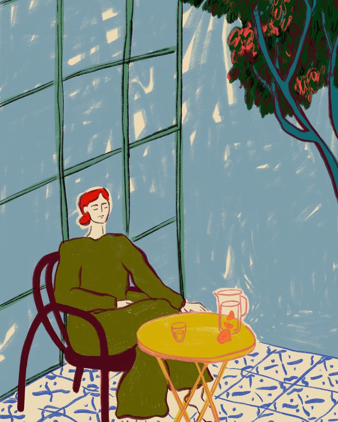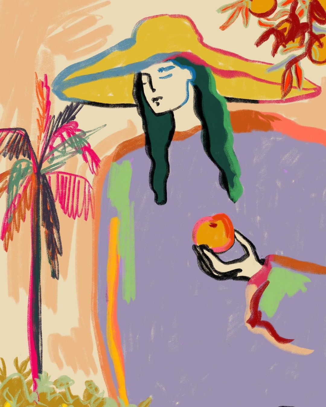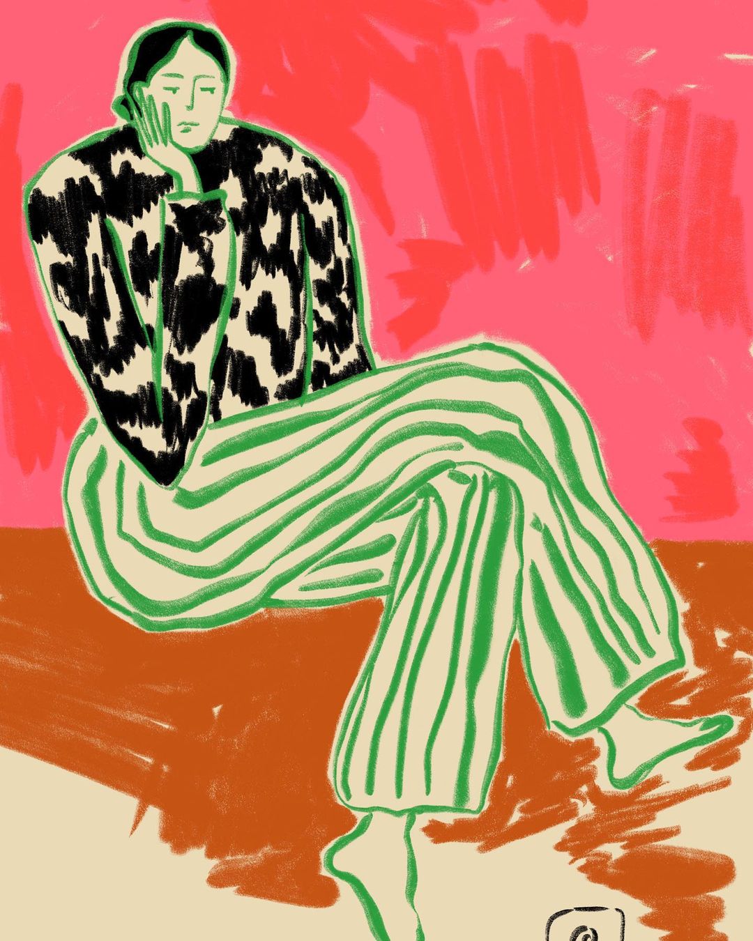 Az orosz-izraeli-bolgár származású művész Izraelben született, Moszkvában volt iskolás, Barcelonában járt egyetemre, majd öt éve Budapestre költözött magyar párjához. „Beleszerettem Budapestbe. Mesebeli érzést kelt bennem a város, különösen ősszel és tavasszal. Szeretem azt a nyugodt életmódot, amit itt élhetek. Azt gondolom, Budapest minden munkámban jelen van. A kisbabámmal naponta legalább egyszer elmegyünk sétálni, ilyenkor lefotózok egy kompozíciót, növényt vagy színkombinációt, amit aztán referenciaként használok a munkáimhoz” – mesélte nekünk. Népszerű Instagram-oldalán külön Highlightba gyűjti ezeket a budapesti snitteket és városi inspirációmorzsákat: kovácsoltvas kapuk, kulcslyukak, színes vakolatrészletek és budapesti nagymamák streetstyle-szettjeinek vidám egyvelegét.