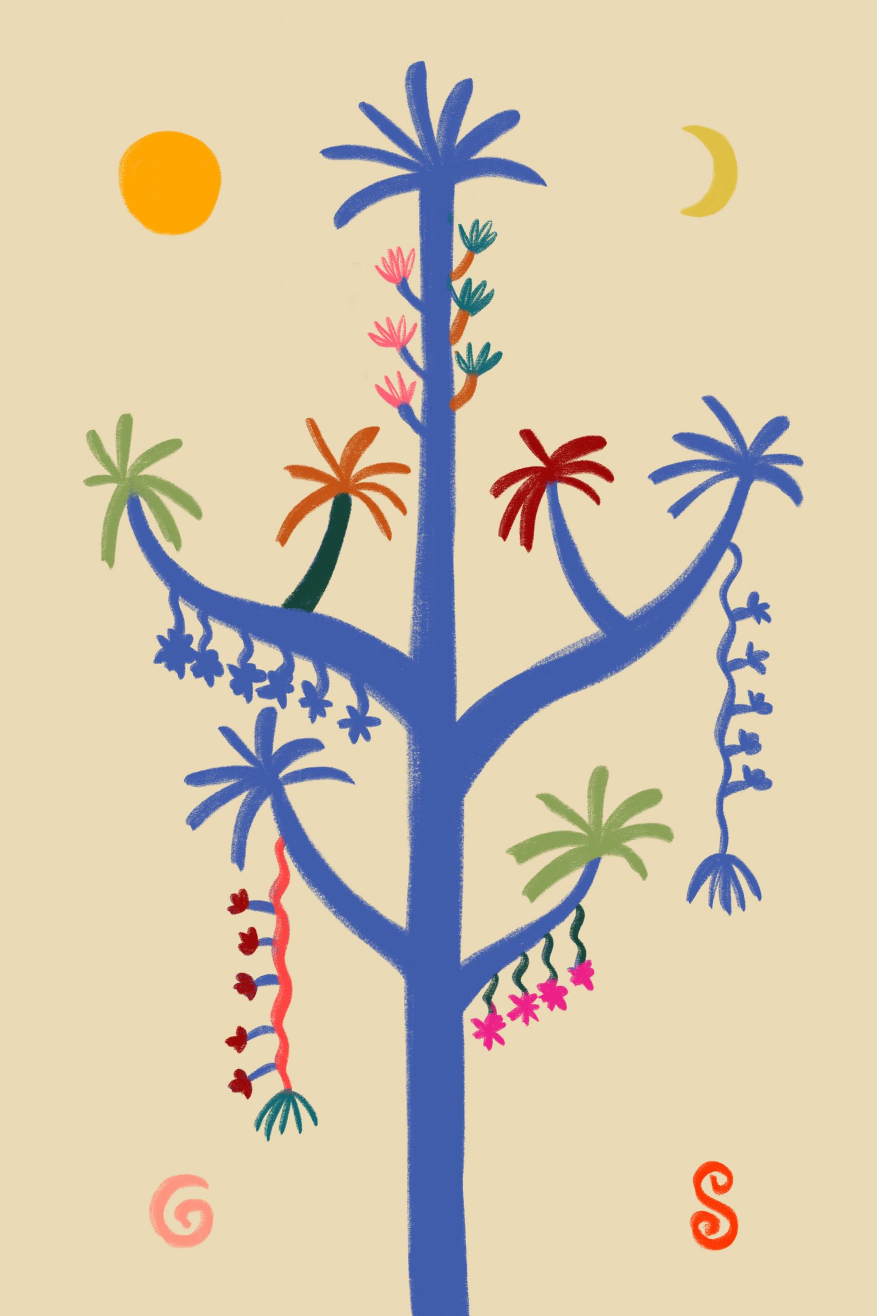 „Jelenleg egy printkollekción dolgozom, amelyet az idei nyár ihletett. Az egyik helyen, ahol a nyaralás alatt megszálltunk a családommal, találtam egy inspiráló könyvet a fákról, és arról, hogy hogyan jelenítik meg őket a görög kultúrában. Miután elolvastam, szürreális fákat kezdtem el rajzolni a szimmetriával és a kék árnyalataival kísérletezve. Mostanában a kék a kedvencem, mindenhol ezt a színt veszem észre, így az egész nyár kék számomra” – mondta el Sandra.