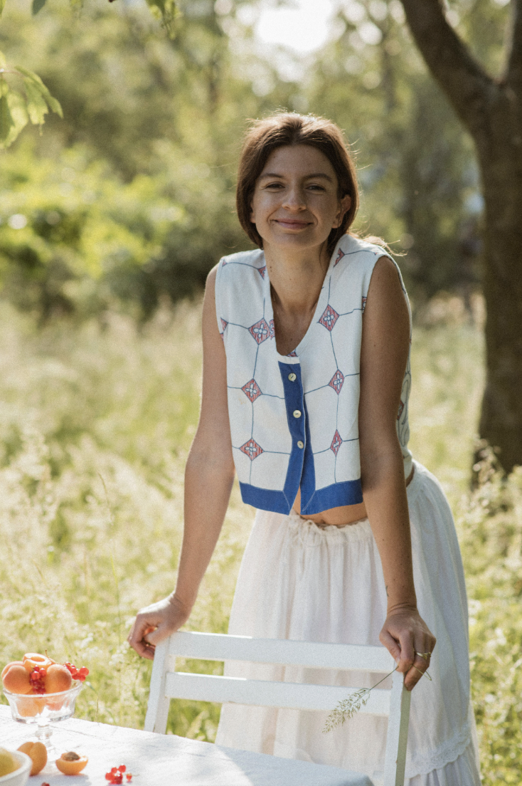 I’ve always been drawn to old things, vintage clothes, and the beauty and functionality of how our great-grandmothers lived. It was last year when I first got to wear a dress made of tablecloth and then everything clicked: my passion for stories and clothes merged into one. This was the beginning of the Story of Tablecloth, a project that has my heart. I love flea markets and second-hand items, and I love to sew. Using old materials to create clothes is the perfect combination for me! Besides working on my skills, I also get to take time to focus on myself. After my son was born—he is three and a half now—I cherish time like porcelain.