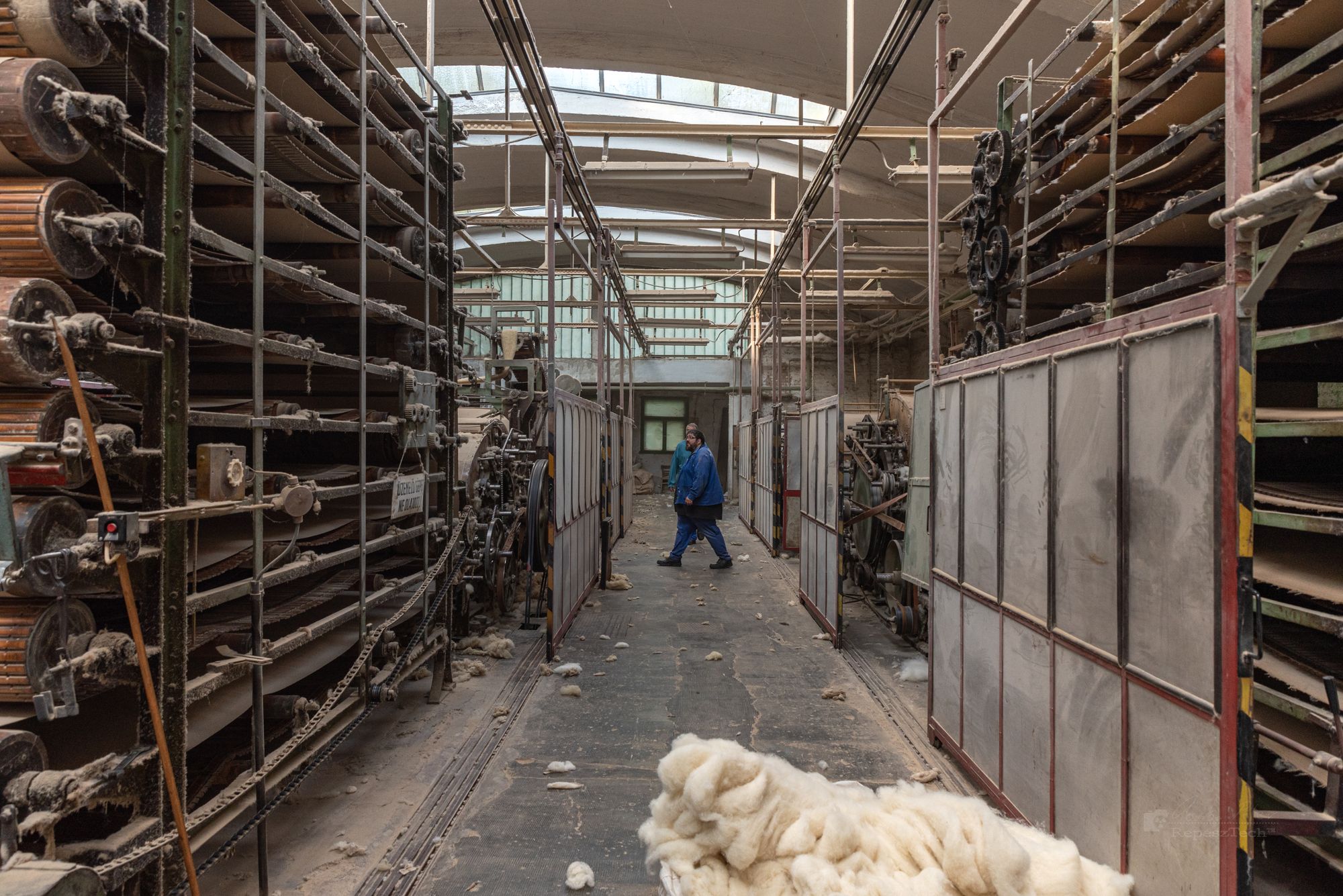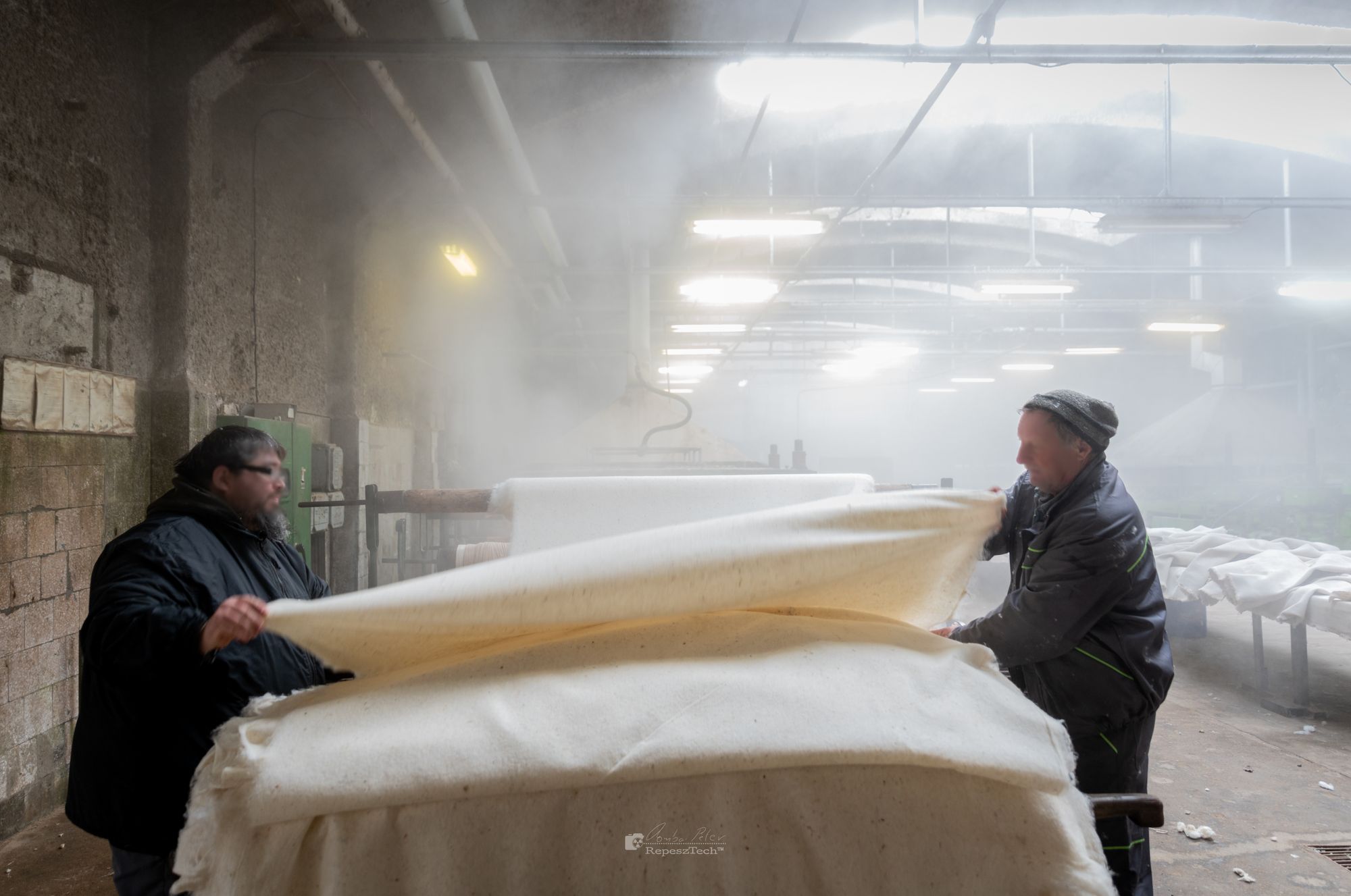 Az ódon gyárépület falai közt jelenleg 11 dolgozó állítja elő a kiemelkedő minőségű gyapjúfilcet. Majd’ minden lépés külön embert kíván, a sorrend szigorú, a régi gépek hangosan zúgnak – Ilona és Éva azonban csillogó szemmel mesélnek az egyes stádiumokról; a tonnás bálában érkező, feldolgozatlan gyapjútól a kártoló finommechanikus munkáján át egészen a festésig.