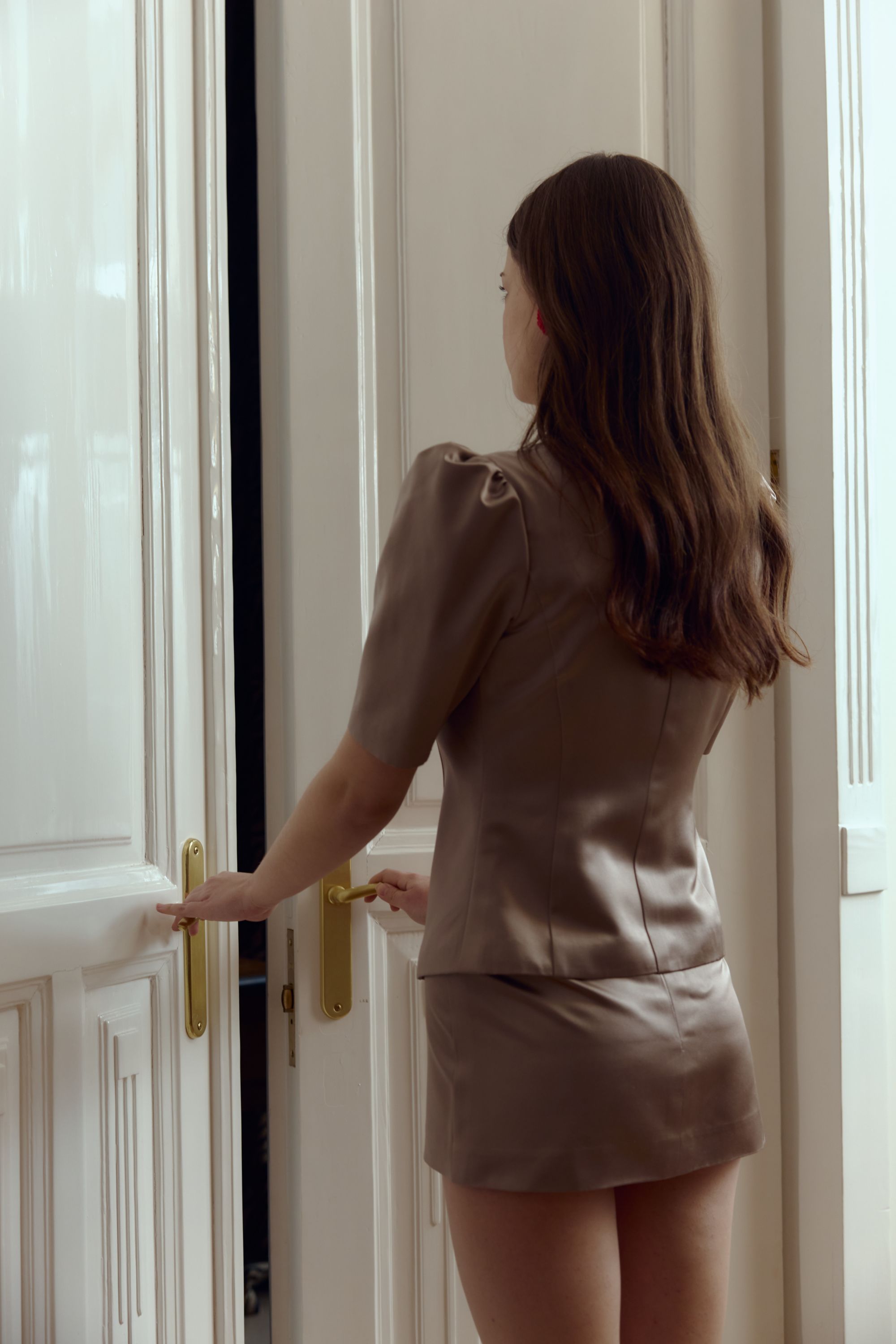 The SS26 collection is a refined study of femininity, movement, and inner radiance. The concept—woman as her own source of light—runs throughout the entire selection. Mini and maxi dresses, coordinated skirts, delicate tops, and softly structured shirts form the backbone of the collection. Silk, cotton, and lightweight blended fabrics fall naturally, allowing the garments to move closely with the body, precisely following its motion without restricting it. The color palette is restrained yet distinctive: black, white, red, and soft pink create a balance between strength and softness. Clean lines and thoughtful proportions result in intimate yet versatile pieces—garments that function just as well in everyday urban situations as they do in more expressive, heightened moments. The brand deliberately avoids thinking in terms of seasonal trends. SS26 does not respond to fashion cycles but focuses on touch, proportion, and wearability. The pieces feel personal and intentional: comfortable without sacrificing elegance or presence. This aesthetic of “soft erotic and fragile power” defines the collection’s quietly confident character.