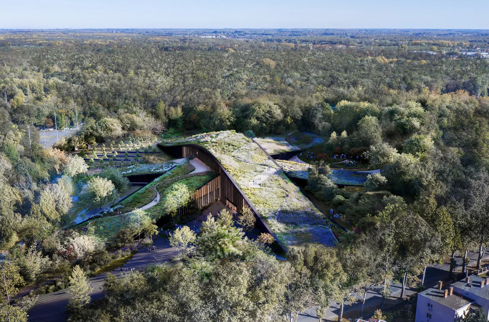 The Collection Centre is a fundamental component of the Hungarian Museum of Natural History’s relocation to Debrecen. The project’s other, far more widely publicised element is the new exhibition building designed by Bjarke Ingels Group (BIG), currently planned for the city’s Nagyerdő (Great Forest) area. BIG’s proposal presents a building deeply embedded in its landscape context, defined by green roofs, sculptural volumes, and a strong visual relationship with the surrounding natural environment. The design focuses primarily on visitor experience and on rethinking the relationship between architecture and nature.