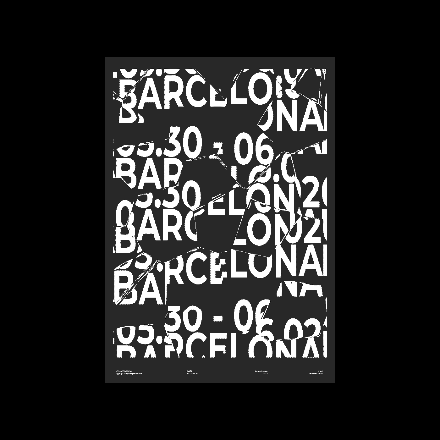Leggyakrabban véletlenszerűen választom ki a szavakat, de előfordul, hogy a Blank Poster nevű Instagram oldal heti kiírt szavára készítek plakátot. Ez egy olyan „virtuális plakátgaléria”, akik hetente meghirdetnek egy random generált szót, amelyre designerek elkészíthetik a sajátjukat, kedvenceiket pedig később megosztják oldalukon vagy akár tényleges kiállítás keretében. A FORGET című plakátom volt az első, amit a Blank Poster-re készítettem, itt a koncepció egy elmosódott effekt használata volt, ami tükrözi a szó jelentését, torzítva magát a szót. Formai kialakításában az az érdekes, hogy nincsenek benne görbék, az egész csak egyenes vonalakból áll, amelyek el vannak csúsztatva, ez adja a zajos hatást. Egyébként nincs egy konkrét bevált folyamat, ami alapján készítem a plakátokat, teljesen változó: van, hogy hamarabb jut eszembe maga a mozgás vagy egy forma, amire illik egy adott szó, amivel aztán azt összekötöm. Emellett meg többször előfordult már az is, hogy személyes érzelmi kötődés, illetve esemény által inspirálva választottam szót vagy kifejezést, de nem ez a meghatározó. Készítettem plakátot utazás előtt is, a város sajátos jegyeivel: ilyen volt például a barcelonai plakátom, ahol egy mozaik effektet használtam, reprezentálva Gaudí jellegzetes formavilágát.