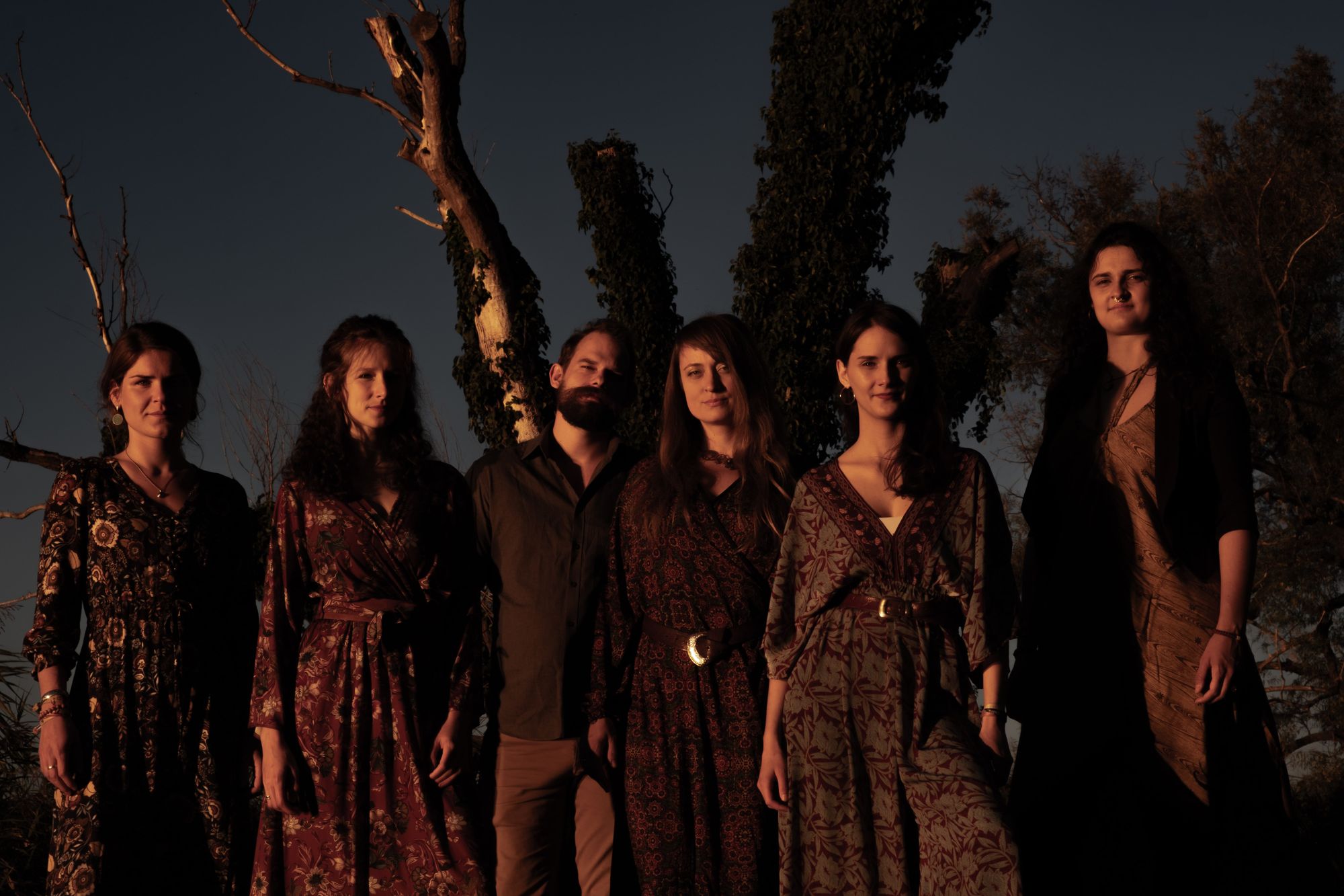 The young musicians of Tindia share a passion for folk music. They all take the knowledge of village masters and traditional performance styles as their starting point, but they reshape the folk songs collected in the Carpathian Basin with their own taste and creativity, adding playfulness and a contemporary approach. Their repertoire consists mainly of melodies collected in Moldavia, but occasionally they also use songs from other regions. Tindia is at home not only on stage, but also at dance houses and community events: their goal is to make folk music exciting for young people and attractive to a wider audience. Their rich instrumentation creates a varied soundscape; Gyöngyvér Lányi-Cseke (violin), Anna Kollár-Apró (koboz, vocals), Bálint Lakat (drums), Panna Szentimrey (flute, kaval), Lilla Szepesi (flute, kaval, doromb, clarinet) and Jázmin Takács-Nagy (vocals, viola) draw on each other's energy and their close friendship both on stage and in the rehearsal room.