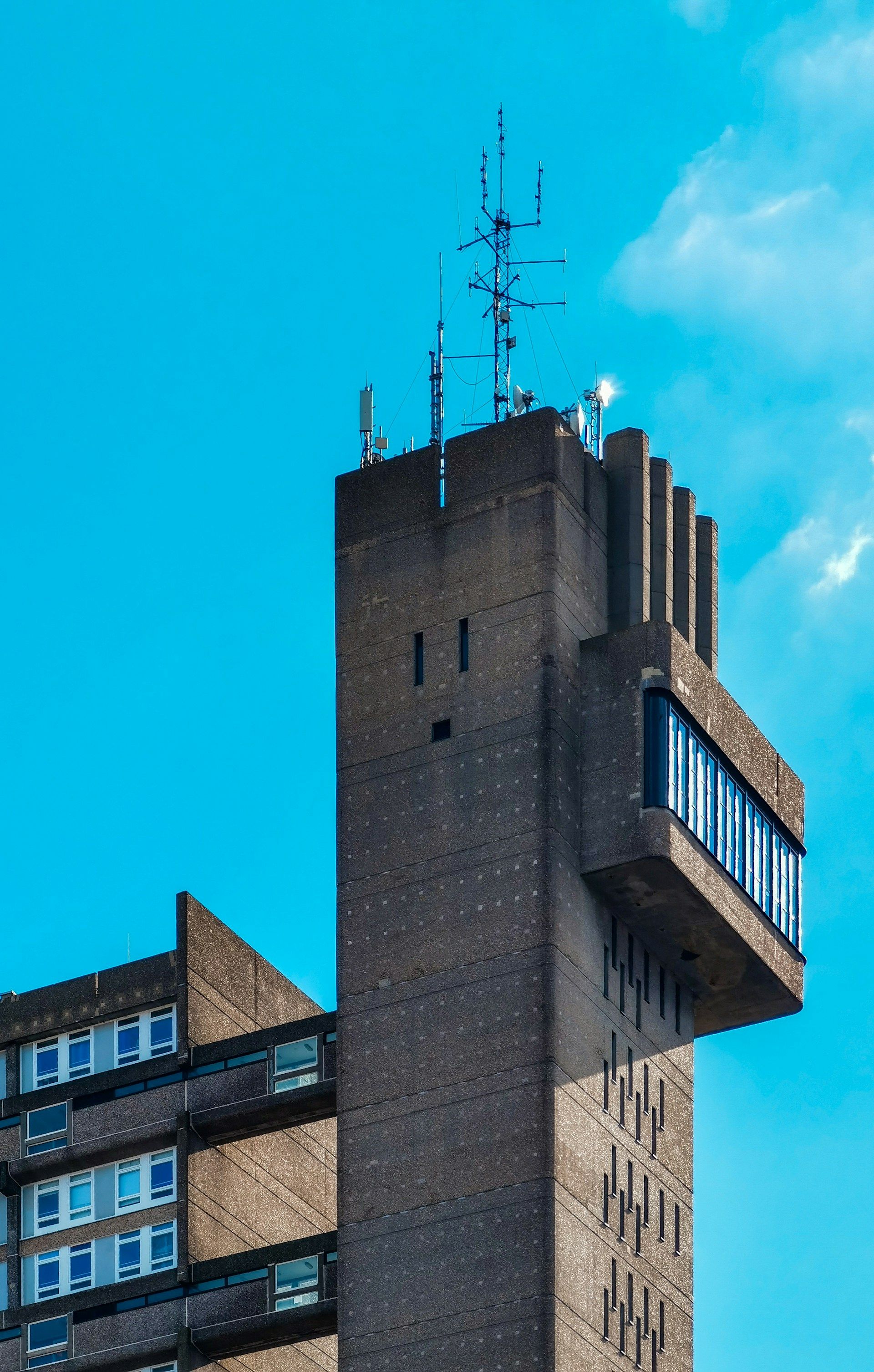 Trellick Tower, North Kensington (1972) – A 31-story residential building with a separate service and circulation tower; now Grade II* listed and one of London’s best-known brutalist icons.