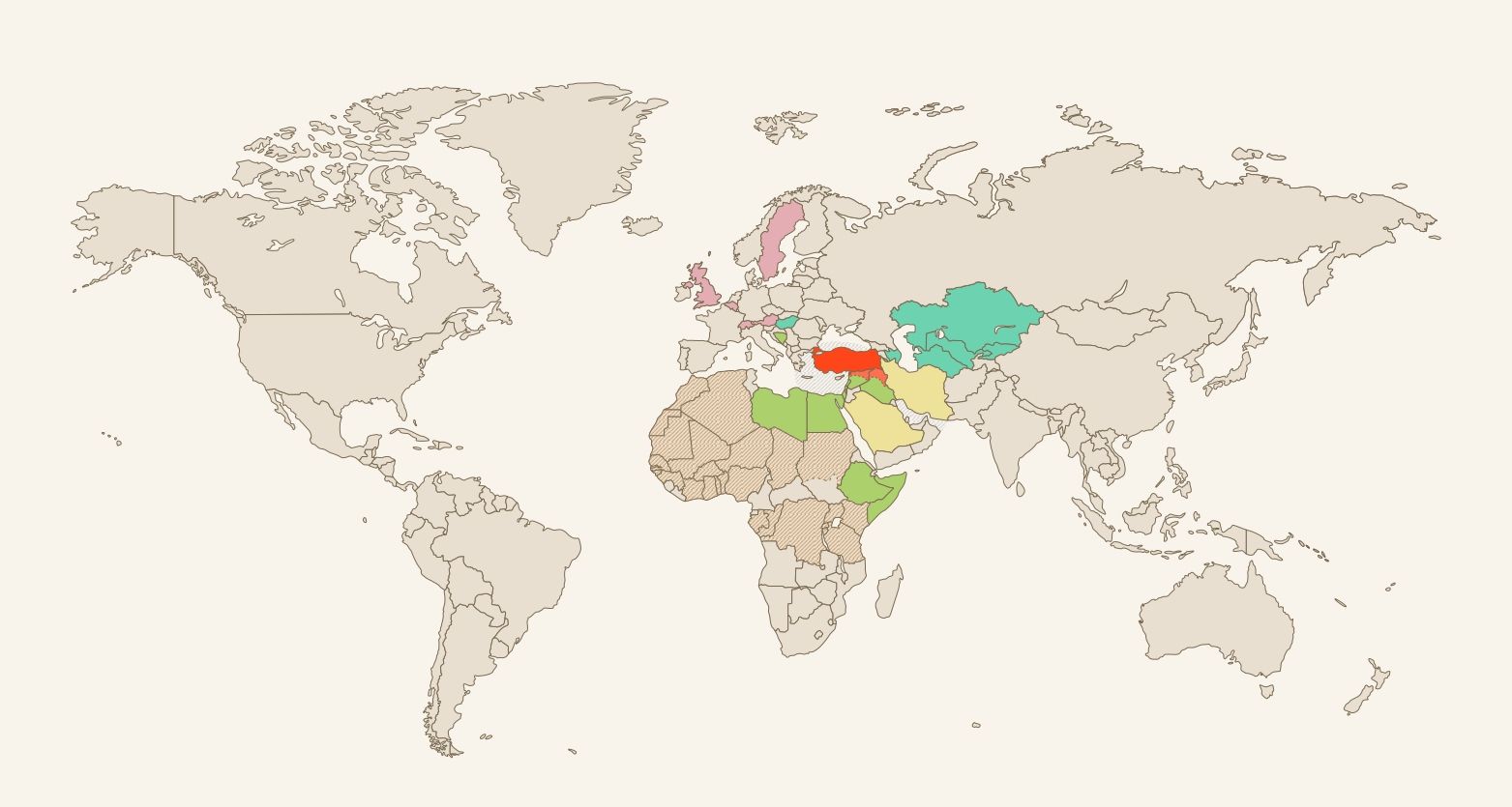 Piros szín: Törökország