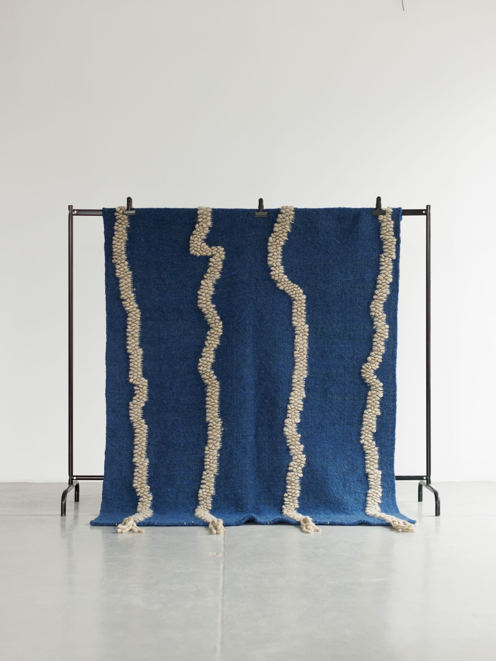 The first spark came from a series of sketches Felix made. There was something instinctive in them that immediately felt familiar to me: waveforms, wind, movement across landscapes. That was the starting point—a visual language capable of capturing both nature’s unpredictability and the order of architecture. We then translated those lines into texture, working closely with our artisans to explore ways of interpreting them in wool.